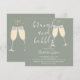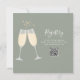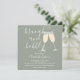 Eine elegante Brunch- und Sekt-Junggesellinnenabschied-Einladung mit Champagnergläsern und Unterschriftsschriftname, diese stilvolle Einladung kann mit Ihren Informationen in schicker Schrift auf einem salbeigrünen Hintergrund personalisiert werden. Mit Ihrem Registrierungs-QR-Code auf der Rückseite. Entworfen von Thisisnotme©