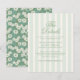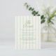 Salbeigrüne Hochzeitsdetails-Einschlusskarte mit eleganten vertikalen Streifen und einem Chinoiserie-Blumenakzent für eine verfeinerte Gartenästhetik. Perfekt zum Teilen von Veranstaltungsortinformationen, Hotelkontingenten, Transport und Hochzeits-Webseite-Details. Inspiriert vom englischen Cottagecore-Stil, fügt dieses Design Ihrem Einladungsset eine weiche romantische Note hinzu, während Ihre Informationen organisiert und schön präsentiert bleiben.