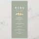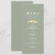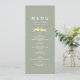 Elegante, salbeigrüne Hochzeitskarte mit einer romantischen, faux-goldenen Illustration von Liebesvögeln und minimalistischer weißer Typografie. Perfekt für Frühlings-, Sommer- oder Herbstempfänge, ergänzt diese Menükarte ein zeitloses und naturinspiriertes Hochzeitsthema. Vollständig bearbeitbar mit Ihren Vorspeisen, Hauptgerichten und Desserts. Passt zur kompletten Gold-Liebesvögel-Hochzeitssuite.
