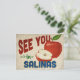 Eine charmante Salinas California Reisepostkarte mit einem schönen roten Apfel, zusammen mit lustigen Retro-Text, der sagt: "See you in Salinas"