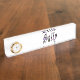 Namensplakette mit Uhr