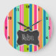 Salmon Pink & Seafoam Green; Vintage Chalkboard Große Wanduhr