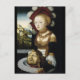 Salome "die Tochter von Herodias, prächtiges Kleid und Schmuck mit weißem Federhut und Seenlandschaft im Hintergrund des deutschen Malers Lucas Cranach the Elder 1530 .Alte braune Pergament-Effekte und ein roter Ruby auf der Rückseite.
