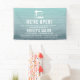 Illustration von Fön, Eisen, Kegeleisen und Buttonen über eine Aquarellfarbe inspiriert Aqua ombre Hintergrund mit weißem Text.