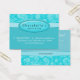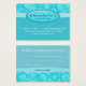 Salon Geschenkkarte / Zertifikat (Visitenkarte) für Nagel- oder Friseursalon oder Wellness-Center mit hübschem Blumenmuster / Blume in elegantem und trendigem blauen Damast und Streifen mit ovalem Firmennamen Blase.
