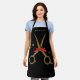 Schwarze Schürze für Friseursalon Stylist oder Friseur. Erhältlich in kleinen, mittleren und großen Größen. Haircut-Schere Logo mit eleganter Schriftzeichen-Typografie. Auch gut für GRILLEN, Kochen, Backen, Party zum Abendessen, Waschen, Kunst & Kunsthandwerk usw.
