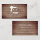 Eine Visitenkarte der Haarindustrie mit einem holzinspiriert Hintergrunddesign auf Vorder- und Rückseite. An der Vorderseite befindet sich eine weiße Abbildung von Eisen, Fön und Buttonen mit Bobby. Personalisieren Sie den Text vorne und hinten mit Ihrem Namen und Ihren Kontaktinformationen.