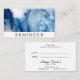 * Erinnerung der Ernennung: Nächste Ernennung. Sehr künstlerische und abstrakte moderne Visitenkarte für jemanden, der ein schönes künstlerisches Design für ihre Markenführung sucht. Der schwarze Text "ERINNERUNG" befindet sich auf einem weißen Hintergrund. Die Farben sind sehr Bio. Das Design ist in verschiedenen Blau- und Türkistönen gehalten. * Dieses schöne Design kann eine ganze Reihe von Schönheit oder Service zentriert Unternehmen. Beispiele dafür sind Wellness-Center, die Gesichtsbehandlungen anbieten, wie z.B. Fachleute der Hautpflege, Ästhetiker, Friseur, lash-Stylist, Salonbesitzer, Kosmetologen, Hochzeitsplaner, Veranstaltungsplaner und vieles mehr. Mein Rat an Sie ist es, sich zu konzentrieren und die Wahl der Erinnerung für Geschäftstermine zu "spüren". Wenn sich diese Karte für Sie richtig anfühlt, dann ist das Ihre Intuition, die mit Ihnen spricht. Gehe mit deinem Bauch, es ist immer richtig. *~* Mein Name ist Anna Rosa und ich bin ein international bekannter Fernwärmer, der seit 2001 sowohl Reiki Heilenergie als auch meine eigene Energie-Heilmethode Aurora Mistica (R) kanalisiert. Alle meine Designs und Produkte werden durch die sanfte, ruhige Heilenergie aus der Ferne energiesparend ergänzt. Genießen Sie die guten Schwingungen :) Für mehr heilende Energievibes besuchen Sie meine entfernte Heilstelle: http://www.reikiwithtrust.com http://auroramisticadistancehealing.com. http://facebook.com/annarosaeverythingenergy Haftungsausschluss: Was ich als Fernheiler mache, ist eher ein Kompliment als ein Ersatz für medizinische und psychologische Leistungen. Sehen Sie ein gesundheitliches oder psychologisches berufliche für Ihre Ungleichgewichte und Beschwerden.