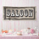 Saloon Schild Banner mit rustikalem Holzlook Hintergrund und Cowboy Western Schriftart für Wildwest Themenabend. Hänge über dem Bar oder über einer Tür. Wählen Sie ein Banner in Innen- oder Außenqualität.
