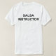 Ein Shirt, das "Salsa-Lehrer" auf der Front und die lustigen "Bäder sagt, die auf Anfrage" verfügbar sind, ist auf der Rückseite. Es sieht wie "nach" ist bei dem Eintauchen des "Antrags" aus