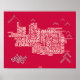 Vierfarbiges typografisches Kartenposter von Salt Lake City, Utah Viertel. Satinfinish, schweres Papier.
