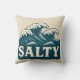 Giant whitecap waves roll toward the beach in this retro style coastal graphic. Cream vintage SALTY text makes a bold contrast against the teal blue ocean. Made for beach bums, surfers, sun seekers and anyone living on island time. This white sand throw pillow is the perfect addition to your beach house decor. | Matching throw blanket available in my store.
