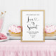 Das Gastgeschenk Hochzeit-Zeichen enthält das Zitat "Das Leben kann salzig sein, aber die Liebe ist süß" in der modernen Kalligraphie-Skript mit Herzakzenten, signiert mit "Danke für das Kommen, nehmen Sie eine Leckerei" Nachricht von der Braut und Bräutigam neuverheirateten Ehepaaren. Die Farben Schwarz und Weiß können geändert werden.