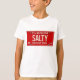 Travel back in time with this vintage-inspired SALTY license plate design. Bold embossed-style cream text pops on the red contrast. The use of retro-style lettering, realistic screws and Sunshine State slogan keep the vintage vibe realistic. This unique statement t-shirt is perfect for your next beach day, boat trip or everyday coastal life. | Vivid printing is recommended for non-white garments.