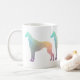 Saluki Hund züchtet Silhouette in farbenfrohen pastellfarbenen geometrischen Mustern. Diese Seitenansicht kann auch als afghanischer Hund, Borzoi, Sightthound, Lurcher, Silken Windbound, Gazelle Hound, Persian Greyhound, Arabian Hound, Levrier, Russian Wolfhound, American Staghound