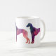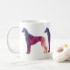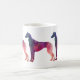 Saluki Hund züchtet Silhouette in farbenfrohen lila geometrischen Mustern. Diese Seitenansicht kann auch als afghanischer Hund, Borzoi, Sightthound, Lurcher, Silken Windbound, Gazelle Hound, Persian Greyhound, Arabian Hound, Levrier, Russian Wolfhound, American Staghound