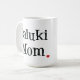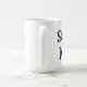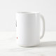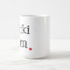 Weiße Tasse mit schwarzem Text und einem kleinen roten Herzen