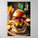 Erleben Sie die pulsierenden Aromen Salvadors mit diesem sensationellen brasilianischen Picanha Burger. Eine saftige Pickanha-Rindfleischpartie, gegrillt bis zur Perfektion, wird mit geschmolzenem Kürbiskäse, karamellisierten Zwiebeln und knusprigem Speck überzogen. Alles in einem weichen Brioche-Bun versteckt. Eine brasilianische Miniatur-Fahne verleiht dem Ganzen eine festliche Touch, während auf einer rustikalen Holzplatte knusprige Yuca-Erholungen serviert werden, die das authentische brasilianische kulinarische Schaffen ergänzen.