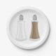 Ein Set Salz- und Pfefferschüttler. Dieses Design wirkt auf diese Paper-Teller sehr effektiv