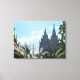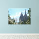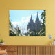 Bild des LDS Salt Lake Temple, umgeben von grünen Bäumen an einem blauen Himmel und Wolken, mit einem malerischen Effekt.