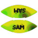 Auf einer grünen und gelben Ölfarbe ist der Name Sam abgebildet