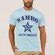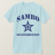 Hellblauer Kriegskunst-T - Shirt mit dunkelblauem Samboentwurf auf der Front.