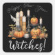 Dieses Design feiert Samhain - Hexen' Neues Jahr. Es enthält den Text "Happy New Year Hexen!", sowie das Bild von einigen Kerzen, Herbstlauben, Kürbissen und einer Taube. Der gesamte Text kann angepasst werden, und das Bild kann an Größe und Platzierung angepasst werden.