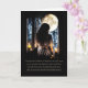 Samhain Grüße mit allen mystischen Verzauberungen des heidnischen Urlaubs. Eine schöne Dame sieht auf dem Mond mit Kerzen und einem Gedicht.