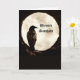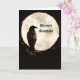 Gesegnete Samhain-Karte mit dem mystischen Rabe- oder Krähenvogel, in einem kreisförmigen Fenster und Wolken. Fertig ist schwarz-weiß.