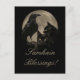 Der gesegnete Samhain! Ein heidnischer, wicca keltischer Urlaub. Diese magische Karte zeigt einen schönen Rabe und zwei schwarze Katzen mit einem großen Herbstmond.