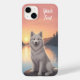 Samoyed sitzend am See bei Sonnenuntergang. Fügen Sie dieses Bild anderen Produkten hinzu. Fügen Sie auch Ihren eigenen Text hinzu. Viele Haustiere in meinem Laden.