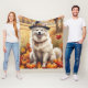 Samoed in Herbst Blätter Erntedank Kunst Fleecedecke