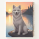 Samojede sitzt am See bei Sonnenuntergang. Füge dieses Bild zu anderen Produkten hinzu. Puzzles, Planer, Notizbücher Ornamente Fliesen Handyhüllen mehr mit diesem Design in meinen Läden. Füge auch deinen eigenen Text hinzu. Viele Haustiere in meinem Laden.