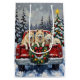 Embrace the snowy charm of the holiday season with this stunning Samoyed Christmas design! This festive scene features three beautiful, smiling, snow-white Samoyeds sitting contentedly in the back of a classic red pickup truck, perfectly suited for the snowy winter forest setting. The vintage truck is charmingly decorated with a vibrant Christmas wreath, adorned with sparkling red and gold ornaments and warm, glowing lights. Abundant snowflakes fall around the scene, truly creating a magical winter wonderland. With a decorated Christmas tree in the background, this design is perfect for capturing the joyful spirit of the holidays and makes an excellent Christmas gift for any Samoyed owner, dog lover, or admirer of festive and magnificent dog art.