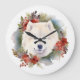 Samoyed Christmas Wreath Festivals Große Wanduhr