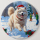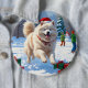 Ein fröhlicher Samoyed läuft spielerisch durch die schneebedeckte Winterszene und trägt einen festlichen roten Weihnachtshut. Dieses reizende Design hebt den flauschigen weißen Mantel der Rasse hervor, strahlt ein Lächeln aus und besticht durch seine freundliche Persönlichkeit. Gleichzeitig wird die Wärme und die Magie der Urlaubssaison aufgefangen. Ein herzlicher Winter voller festlichen Beifall.