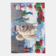 Samoyed Running in Snow mit Weihnachtshut Geschirrtuch