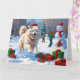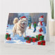 Samoyed Running in Snow mit Weihnachtshut Karte