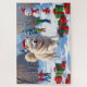 Samoyed Running in Snow mit Weihnachtshut Puzzle