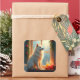Samoyed Under the Mistletoe Christmas Painting Quadratischer Aufkleber