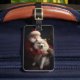 Samoyed with Santa Claus festliche Weihnachten Gepäckanhänger