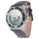 Herrenuhr aus Edelstahl mit schwarzem Lederarmband