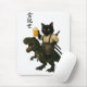 Samurai Cat with Beer & T-Rex | Retro Japanese Art Mousepad