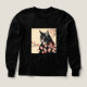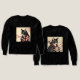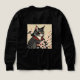 Eine beeindruckende Abbildung einer wilden schwarzen Samurai-Katze, die in traditioneller Rüstung gekleidet ist und von zarten rosa Kirschblüten umgeben ist. Der kühne Kontrast zwischen den stechenden goldenen Augen der Katze und dem weichen, blumigen Hintergrund schafft eine perfekte Mischung aus Kraft und Eleganz - ein auffälliges Design, das sich ideal für Streetwear und japanisch inspirierte Mode eignet.