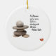 Zen-Stapel aus Kies, ein Haufen trockener Aschenbeeren und Matsuo Basho haiku - keine Blüten und kein Mond, und er trinkt Sake ganz alleine