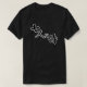 Kennzeichnet die Symbole von der Kampfflagge in Schwarzweiss der sieben Samurais. Die Kreise und das Dreieck stellen die Samurais und in jedem wird geschrieben den Namen der Samurais auf englisches und japanisch zusammen mit den Wörtern 7 Samurais und ronin (masterless Samurais) alle im japanischen Text dar. auf der Front des Shirts, das auf japanisch ist der geschrieben wird, Titel sieben Samurai in Schwarzweiss.