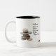 Samurai. Zen-Stapel aus Kies, ein Haufen trockener Aschenbeeren und Matsuo Basho haiku - keine Blüten und kein Mond, und er trinkt Sake ganz alleine. Kaffee-Tasse für jedermann.
