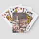 The scene shows a charming village with a bell tower rising above traditional red-tiled roofs. Lush, green hills fill the background.
