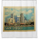 San Diego California Design im Vintage Travel Stil mit einer weiten City Skyline Ansicht mit dem Hafen im Vordergrund.