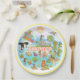 Ein Cartoon von San Diego - Karikaturenfiguren aller Art schwimmen, spritzen und spielen unter der strahlenden kalifornischen Sonne, die hoch darüber scheint.
